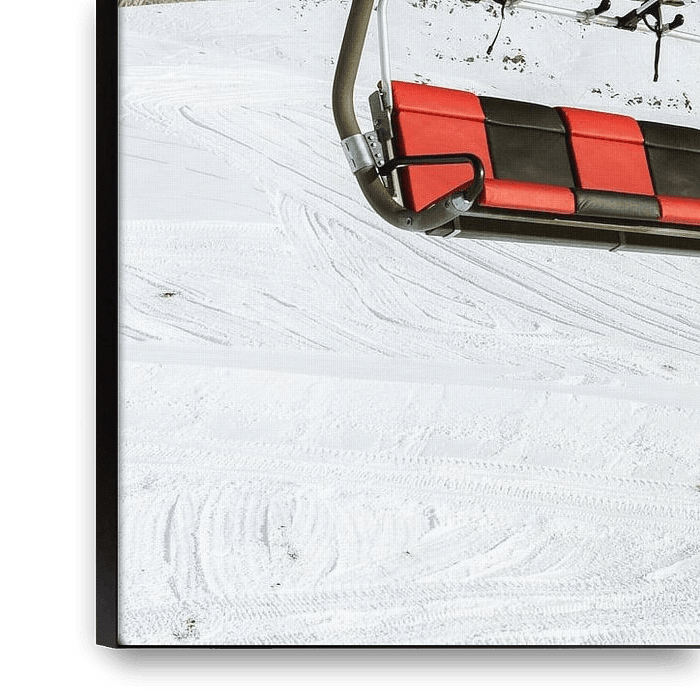 Bestelle das Foto Rot-schwarzer Sessellift oberhalb der Piste - Wintersport von Marit Hilarius als Reproduktion auf Leinwand, Alu-Dibond, als Poster, Fototapete oder Acrylglasbild.
