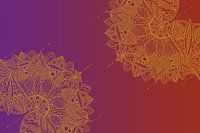 ein abstraktes Kunstwerk mit mehreren Mandalas in goldenen Farben und zahlreichen geometrischen Ornamenten auf einem rot und lila farbigen Hintergrund.