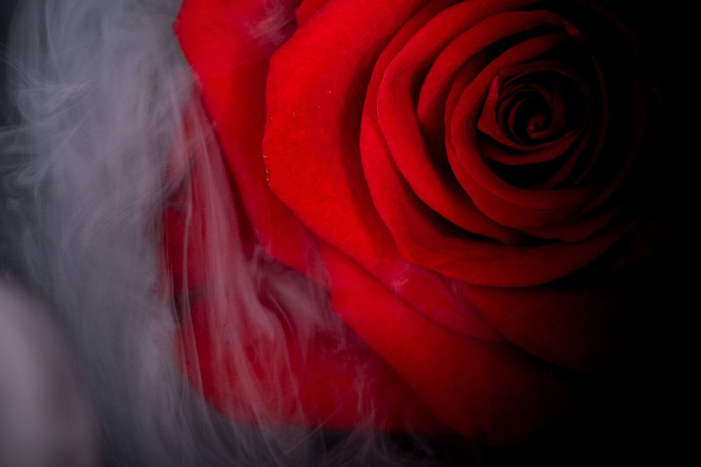 Indem man die rote Rose vor einen schwarzen Hintergrund setzt, sind die Farben und Details besonders schön.