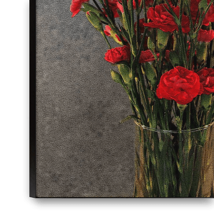 Bestelle dieses Blumen-Wandbild Rote Rosen in Glasvase von Henry Foto als Reproduktion auf Leinwand, Alu-Dibond, als Poster, Fototapete oder Acrylglasbild.