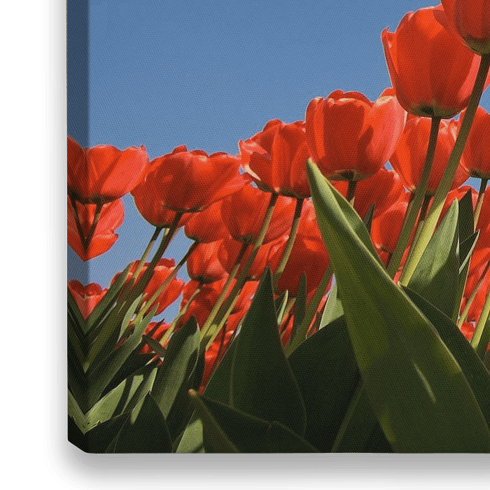 Rote Tulpen gegen einen blauen Himmel