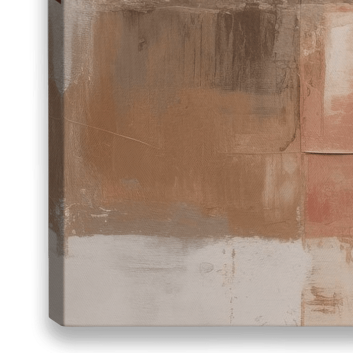 Red Embrace - Dieses abstrakte Gemälde zeigt eine Harmonie von Erdtönen mit einem betonten, tiefroten Rechteck in der Mitte der Leinwand, umgeben von Bereichen in Beige, Taupe und Weiß.