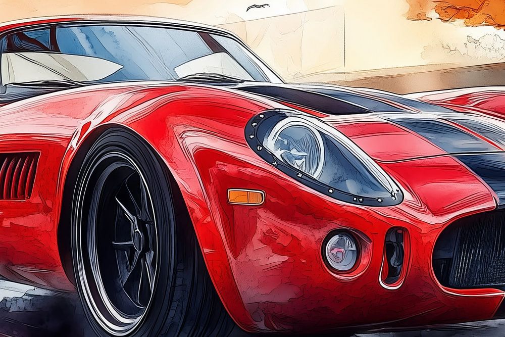 Ein roter Sportwagen im Stil einer Aqauarell-Illustration.