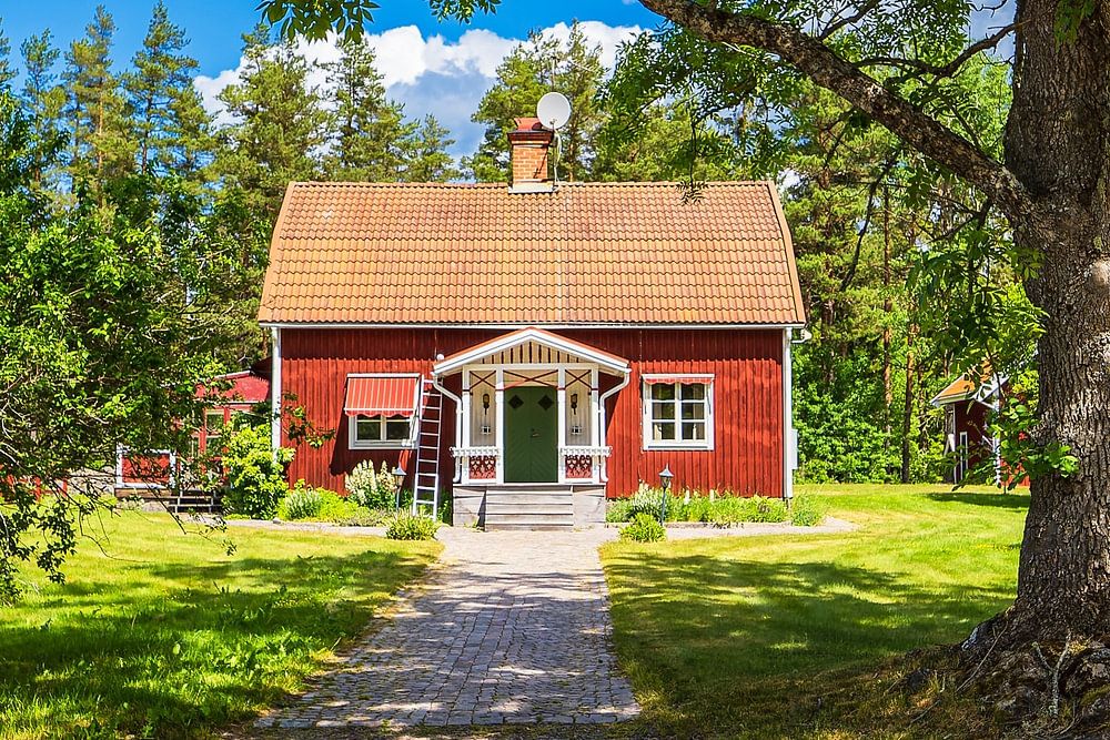 Rotes Holzhaus bei Vimmerby in Schweden.