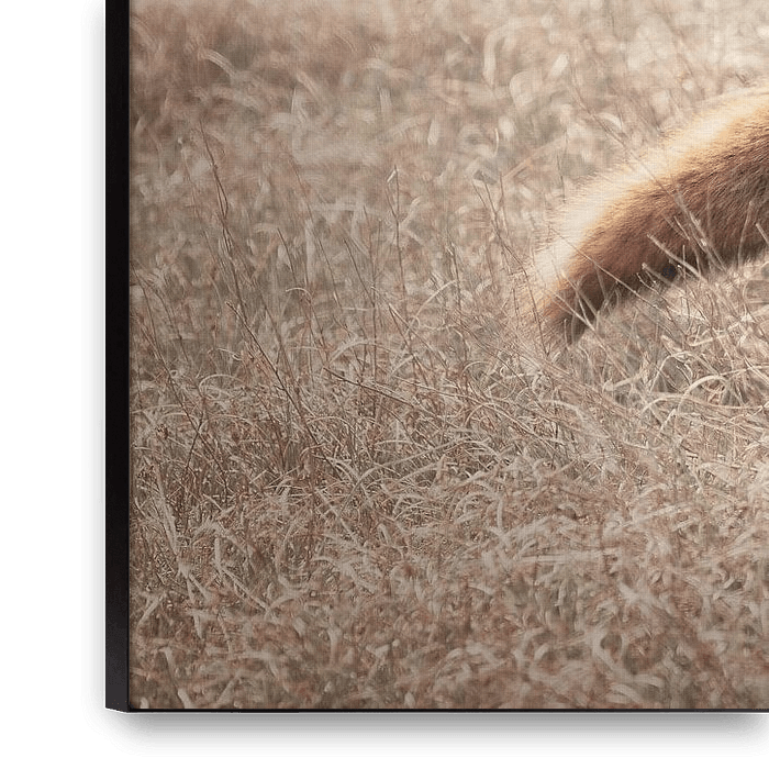 Bestelle das Foto Rotfuchsjagd | Naturfotografie | Wildtiere von Laura Dijkslag als Reproduktion auf Leinwand, Alu-Dibond, als Poster, Fototapete oder Acrylglasbild.