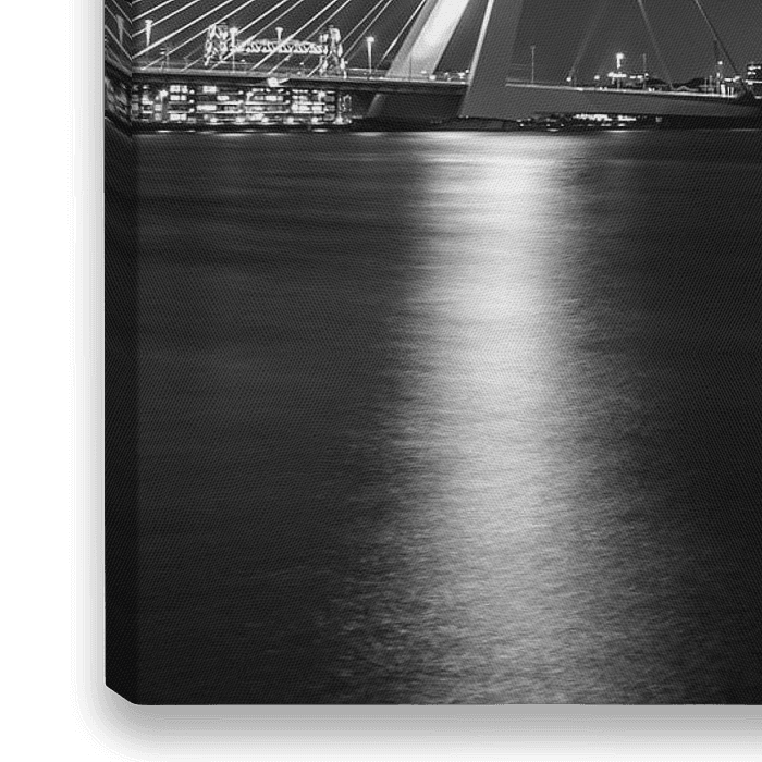 Panorama von Rotterdam entlang der neuen Maas mit dem Kop van Zuid und links die Erasmusbrücke.