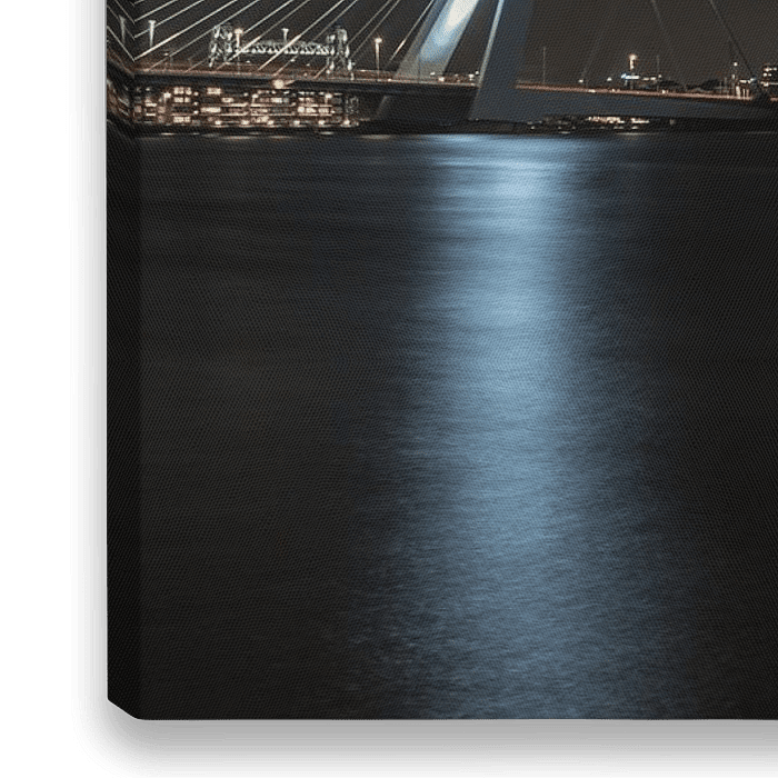 Panorama von Rotterdam entlang der neuen Maas mit dem Kop van Zuid und links die Erasmusbrücke.