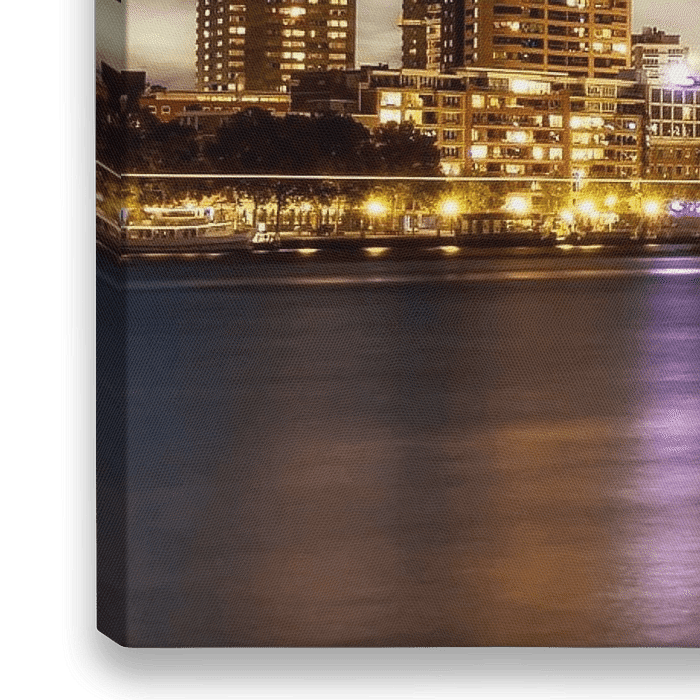 Bestelle dieses Rotterdam-Wandbild Rotterdam Skyline at night von Rigo Meens als Reproduktion auf Leinwand, Alu-Dibond, als Poster, Fototapete oder Acrylglasbild.