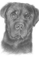 Die detaillierte Bleistiftzeichnung zeigt das Gesicht eines erwachsenen Rottweiler-Rüden mit großen, ausdrucksstarken Augen. Beim Zeichnen war es mir wichtig, seinen intensiven Blick zu betonen, der neugierig und sanft wirkt, aber gleichzeitig fokussiert ist. Mit einem dichten Netzwerk aus feinen Linien habe ich auch die Details von…