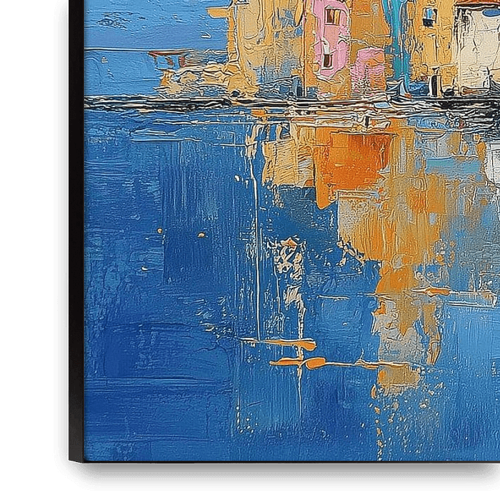 Bestelle diese Malerei Rovinj Kroatien abstrakt buntes Panorama von TheXclusive Art als Reproduktion auf Leinwand, Alu-Dibond, als Poster, Fototapete oder Acrylglasbild.