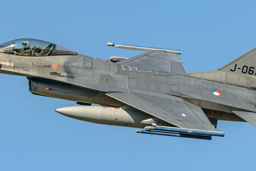 Royal Air Force F-16 "MiG killer" (J-063): Diese F-16 mit dem Kennzeichen J-063 des Geschwaders 322 feuerte eine AMRAAM-Rakete (Advanced Medium Range Air-to-Air Missile) auf ein serbisches MiG-29-Jagdflugzeug ab. In der Nacht des 24. März 1999 findet der erste Luftangriff der Operation "Allied Force" (gegen das ehemalige Jugoslawien) statt. Eine Formation von 4 F-16 soll Koalitionsflugzeuge über feindlichem Gebiet schützen. Es befinden sich 3 serbische MiG-29 in dem Gebiet. Einer der F-16-Piloten fliegt auf einen vermuteten feindlichen Radarkontakt zu und kann feuern. Da der Kontakt aber noch nicht als Feind identifiziert wurde, darf er nichts unternehmen. Er wendet sich vom Radarkontakt ab und übergibt das Angriffs- und Taktikkommando an den Piloten Peter Tankink. In der Zwischenzeit wird der Radarkontakt als eine feindliche MiG-29 identifiziert und Tankink schießt das Flugzeug erfolgreich ab. Dieses Bild wurde am 27. März 2017 auf dem Luftwaffenstützpunkt Leeuwarden aufgenommen.