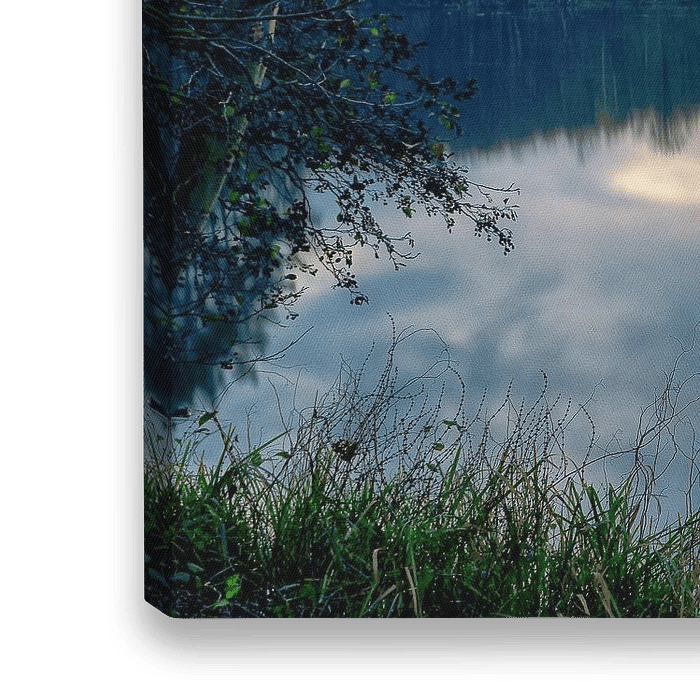 Abends Aufnahme einer schönen Landschaft kurz nach Sonnenuntergang im Sandbruch und ehemaligen Ruderteich in Drunen. Die lange Belichtungszeit sorgt für eine glatte Wasseroberfläche und bringt Ruhe ins Bild.