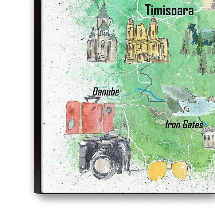 Rumänien Illustrierte Reisekarte mit Straßen und touristischen Highlights