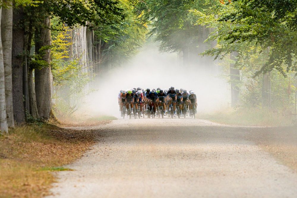 Schotterabschnitt bei der Ronde van de Achterhoek, Rennen der Holland-Cup-Serie.