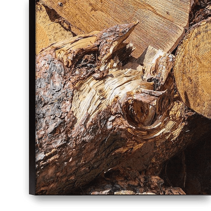 Bestelle das Foto Rundholzstapel mit Faserbezeichnung von Evert Jan Luchies als Reproduktion auf Leinwand, Alu-Dibond, als Poster, Fototapete oder Acrylglasbild.