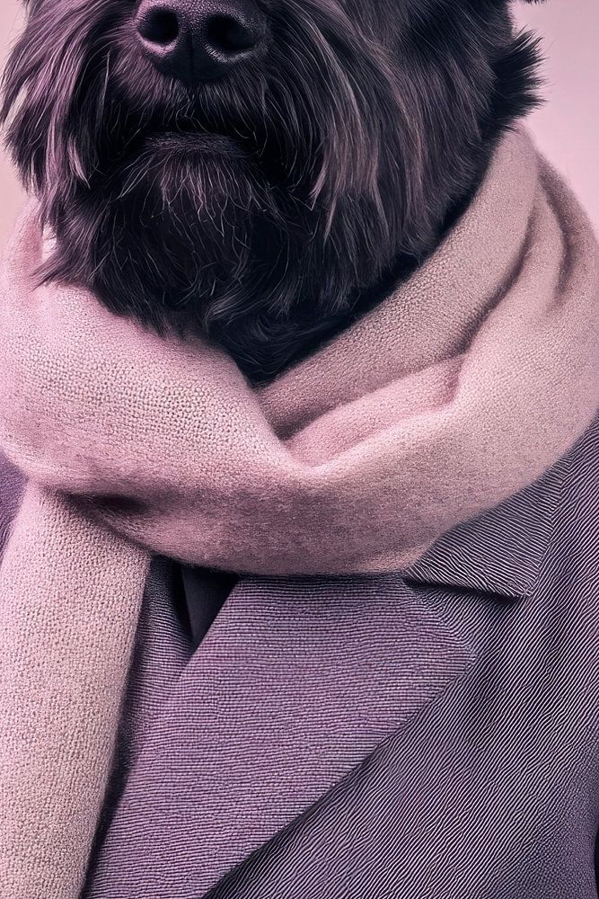 Ein eleganter kleiner Hund mit einem charmanten, neugierigen Blick und einem seidigen, glänzenden Fell präsentiert sich in einem stilvollen Mantel und einer kuscheligen Schärpe. Die große, aufmerksame Ohren und die ausgeprägten Gesichtszüge verleihen ihm einen unverwechselbaren Charakter, der jedem Betrachter ein Lächeln entlockt. Ein wahrer Stadtakrobat mit Stil!
