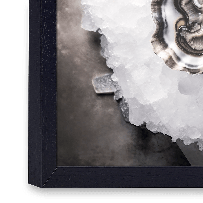 Bestelle das Foto Rustikales Foto einer Auster auf Eis von Roger VDB als Reproduktion auf Leinwand, Alu-Dibond, als Poster, Fototapete oder Acrylglasbild.