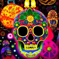 Für dieses Kunstwerk habe ich mit den Möglichkeiten der Künstlichen Intelligenz gespielt und mir einen Totenkopf mit bunten Blumen zaubern lassen. Da mir die Ergebnisse so gut gefallen haben, dass ich sie tatsächlich in meiner Wohnung aufgehängt und mir auch ein paar T-Shirts damit bedruckt habe, wollte ich Ihnen meine blumigen…