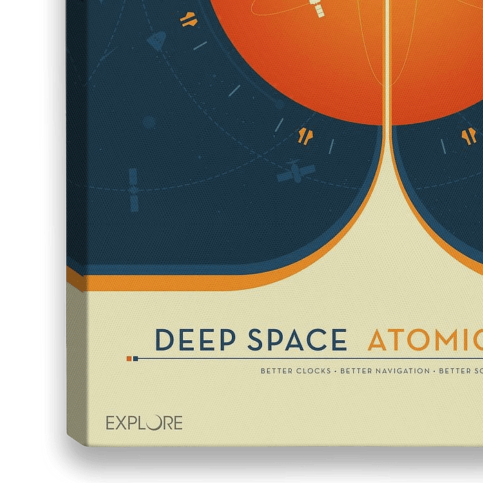 Bestelle das digitale Kunst Bild STK204952S-Deep Space Atomic Clock Poster, orange Version. von Stocktrek Images als Reproduktion auf Leinwand, Alu-Dibond, als Poster, Fototapete oder Acrylglasbild.
