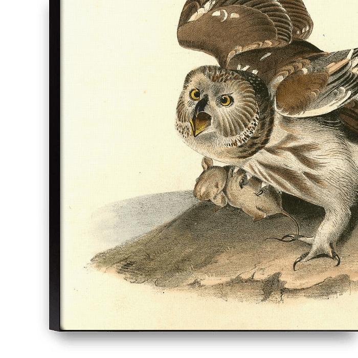 Bestelle Sägekauz, John James Audubon als Reproduktion auf Leinwand, Alu-Dibond, als Poster, Fototapete oder Acrylglasbild.