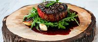 Saftiges Rinderfilet auf Holzplatte von Poster Art Shop