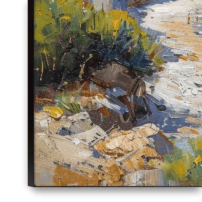 Ihre gewählte Kunst auf Leinwand, gespannt in einem Aluminiumrahmen. Schnell und einfach austauschbar für eine frische Ausstrahlung und ganz nach Ihren Wünschen.