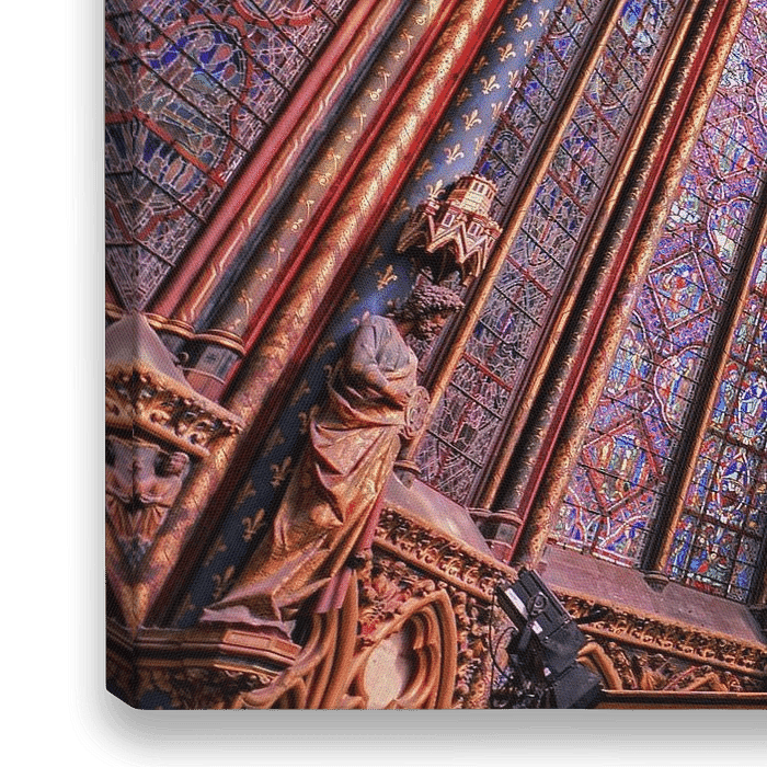 Großartige Aufnahme der violetten Glasmalerei im Inneren der Kapelle Sainte-Chapelle in Paris, Frankreich
