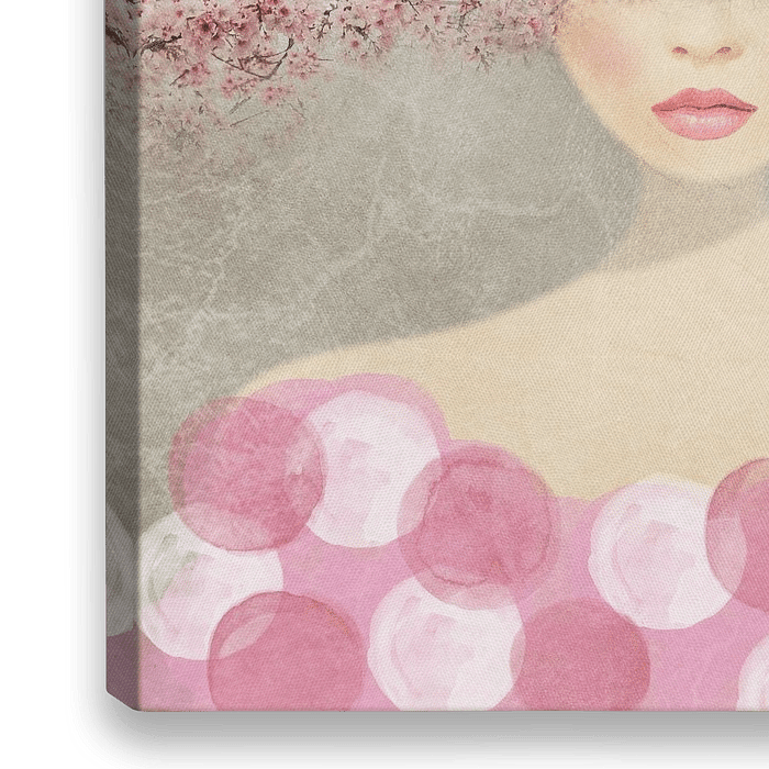 Illustratives, surreales Porträt mit einer Kirschblütenfrisur