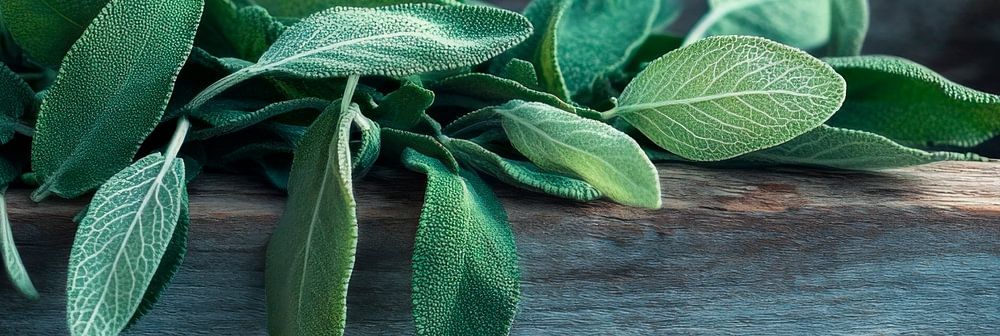 Ein Hauch von Frische und Natur entfaltet sich durch die sanften, grünen Blätter, die auf dem rustikalen Holzboden liegen. Diese harmonische Komposition wirkt einladend und erweckt Erinnerungen an herzhafte Küchenmomente. Ideal für die Küche, wo sie eine entspannte Atmosphäre schafft und die Sinne anregt.