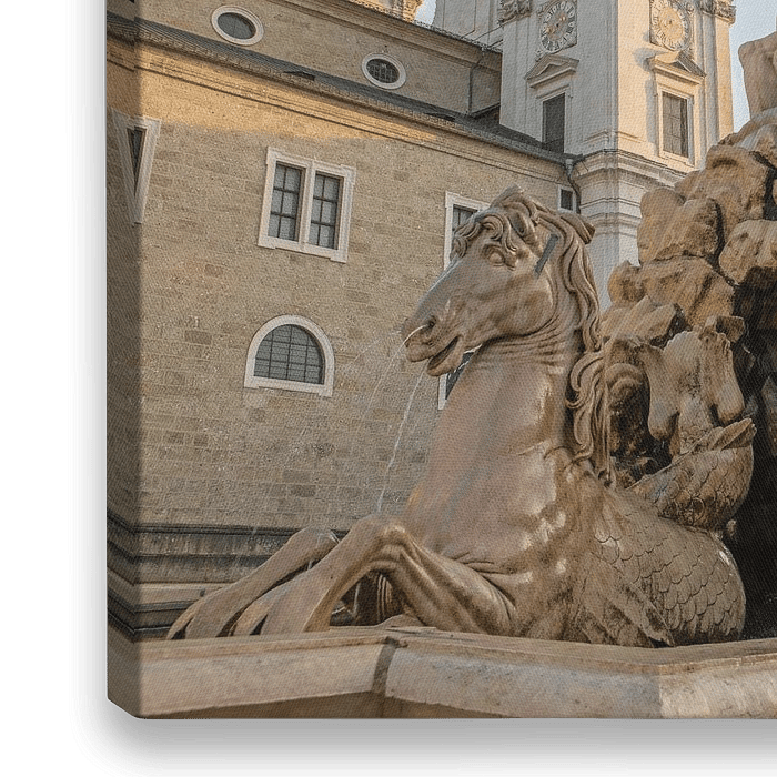 Bestelle das Foto Salzburg - Salzburger Dom vom Residenzbrunnen aus gesehen von t.ART als Reproduktion auf Leinwand, Alu-Dibond, als Poster, Fototapete oder Acrylglasbild.