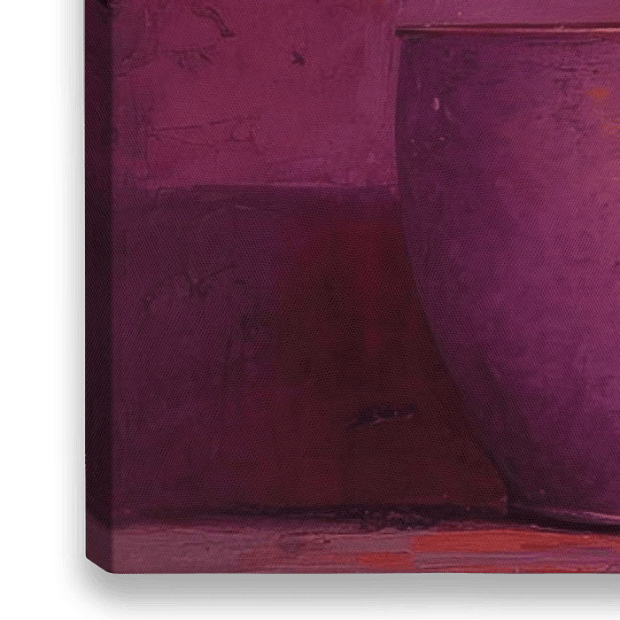 Details: Stillleben, abstrakt, modern, Töpfe, lebendig, Textur, minimalistisch, lila, rot, orange