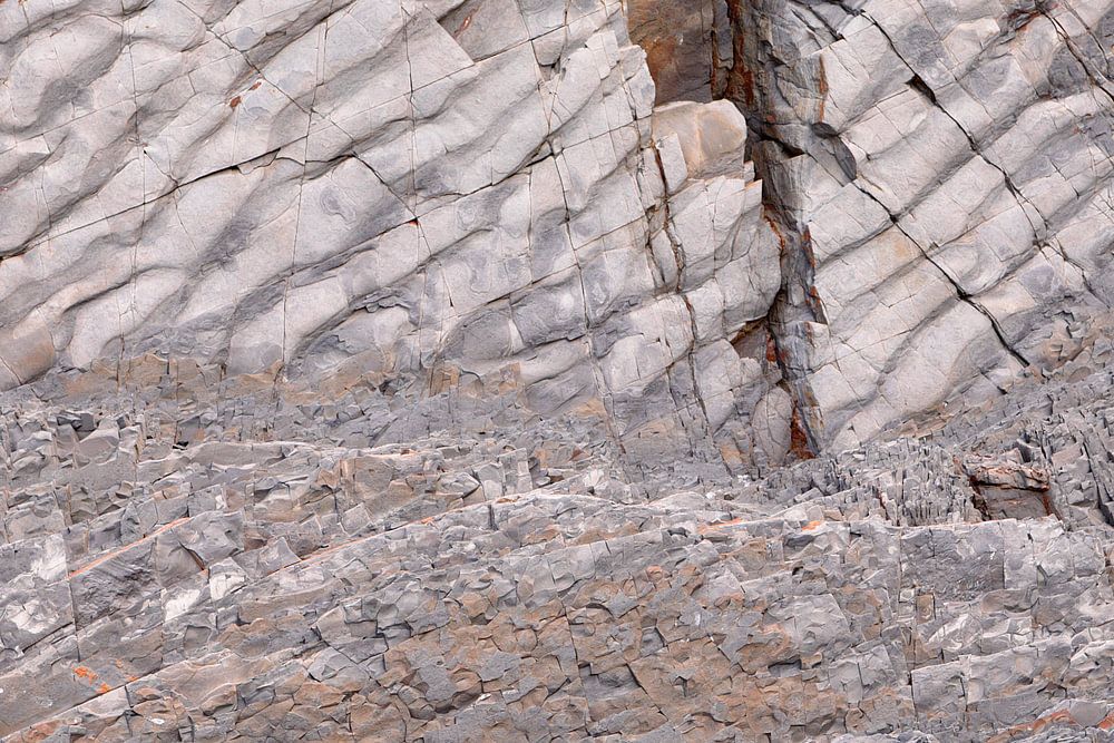An der Südküste Cornwalls gibt es einen Strandabschnitt mit vielfarbigen, seltsam geformten, geschichteten Felsklippen. Im Detail sieht er so aus.