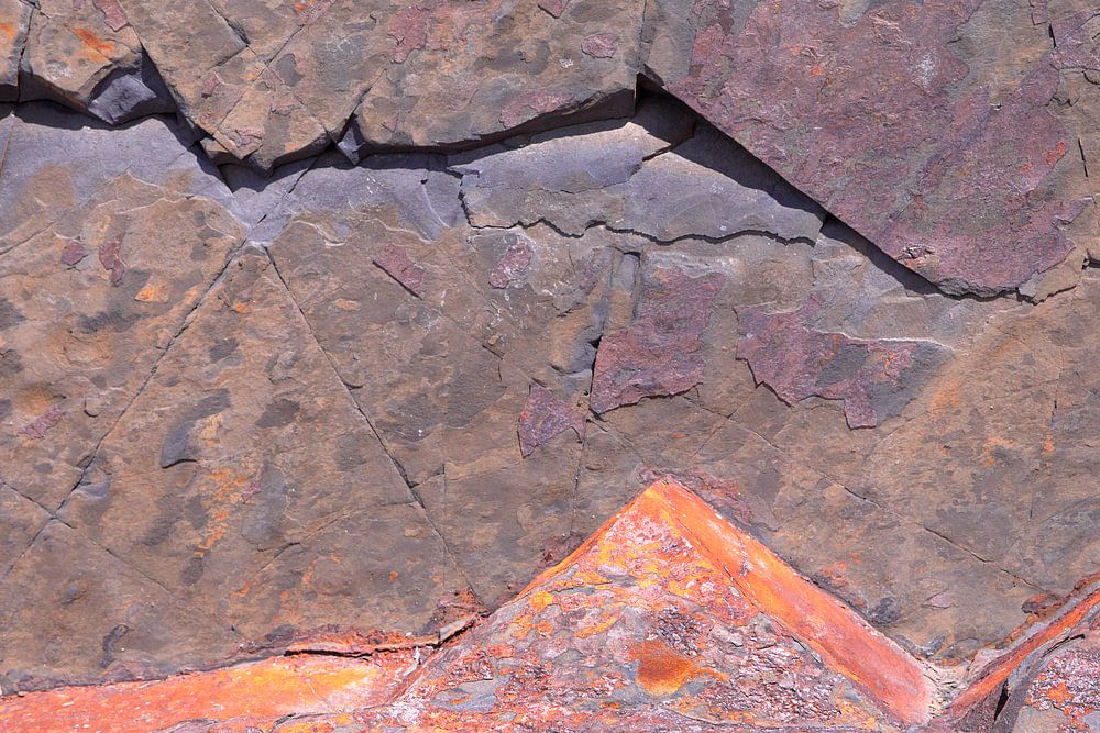 An der Südküste Cornwalls gibt es einen Strandabschnitt mit vielfarbigen, seltsam geformten, geschichteten Felsklippen. Im Detail sieht er so aus. Offenbar ist hier viel Eisen im Mineral enthalten.