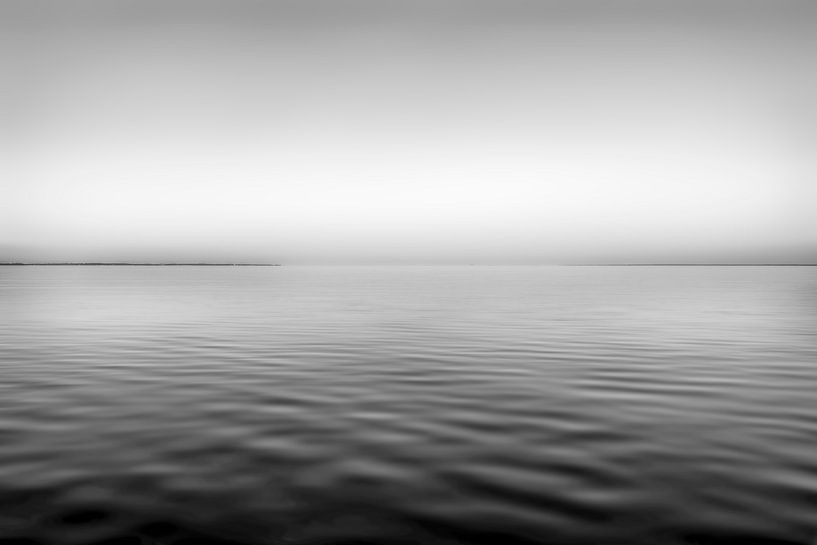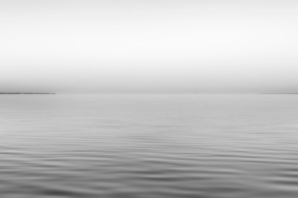 An einem sanften Abend am Strand von Scharbeutz mit Blick auf das Meer in schwarzweiß.