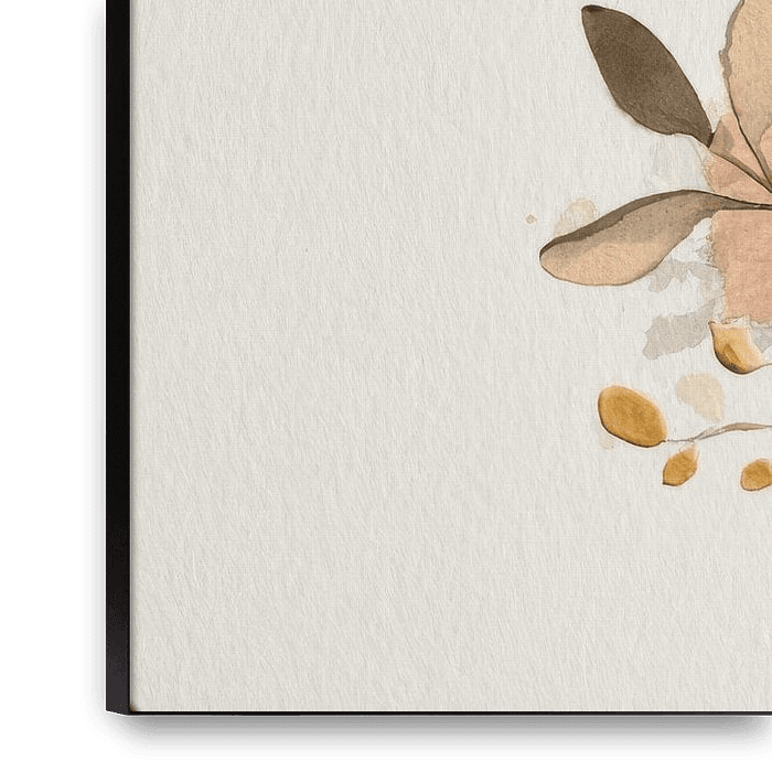 In diesem raffinierten Kunstwerk vereinen sich botanische Elemente und abstrakte Farbflächen zu einer harmonischen Komposition. Zarte rosa Blüten und subtile Blätter scheinen fast auf dem Papier zu schweben, während transparente Schichten und Aquarelltexturen für eine leichte, verträumte Ausstrahlung sorgen.