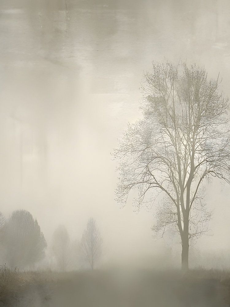 Wie Nebel, der sich an kahle Äste schmiegt, fängt dieses Werk die Poesie eines nebligen Morgens ein. Schichten von weicher Textur schaffen ein beruhigendes visuelles Gedicht.