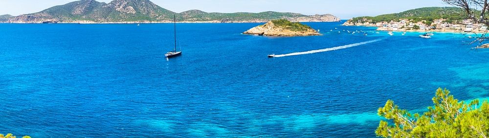 Wunderschöner Strand von Cala Anguial, idyllischer Küstenstreifen auf MallorcaAlex Winter Bucht mit Segelyachten am idyllischen Meer auf der Insel Mallorca, SpanienAlex Winter
