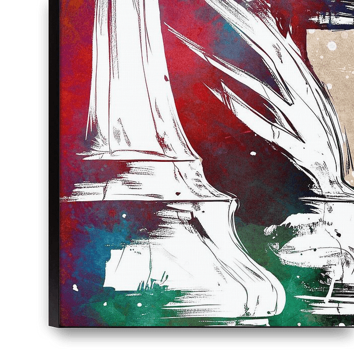 Ihre gewählte Kunst auf Leinwand, gespannt in einem Aluminiumrahmen. Schnell und einfach austauschbar für eine frische Ausstrahlung und ganz nach Ihren Wünschen.