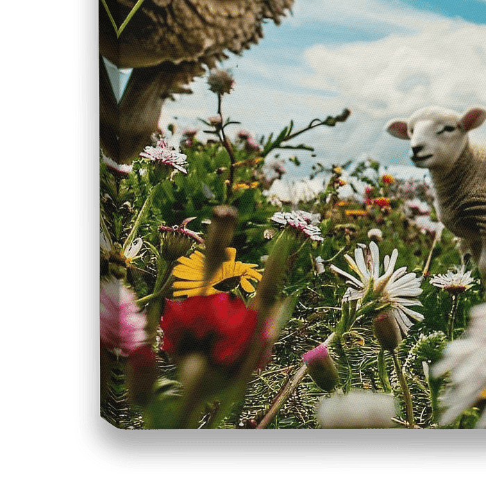 Ein lebendiges und realistisches Bild von Schafen inmitten eines üppigen Blumenfeldes. Dieses Motiv strahlt Ruhe, Natur und Harmonie aus. Die verspielten Blumen und der strahlend blaue Himmel machen es zu einem perfekten Blickfang für jeden Raum. Ganz gleich, ob Sie Ihr Wohnzimmer, Ihr Esszimmer oder Ihr Büro verschönern wollen, diese…