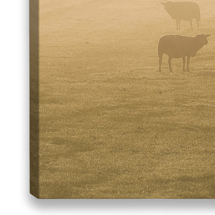 Bestelle dieses Landschafts-Wandbild Schafe im Nebel von Roelof Nijholt als Reproduktion auf Leinwand, Alu-Dibond, als Poster, Fototapete oder Acrylglasbild.