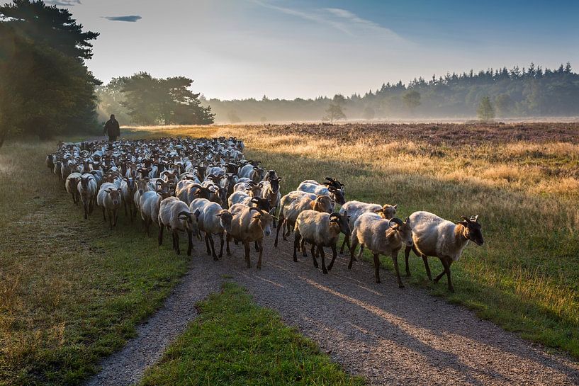 Niederlande, Bussum, Heidegebied de Frans Kampheide. Schafherde mit Hirte.