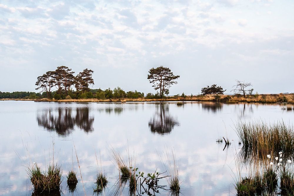Schapenwolkjes reflecteren in ven op het Dwingelderveld bij Kraloo.