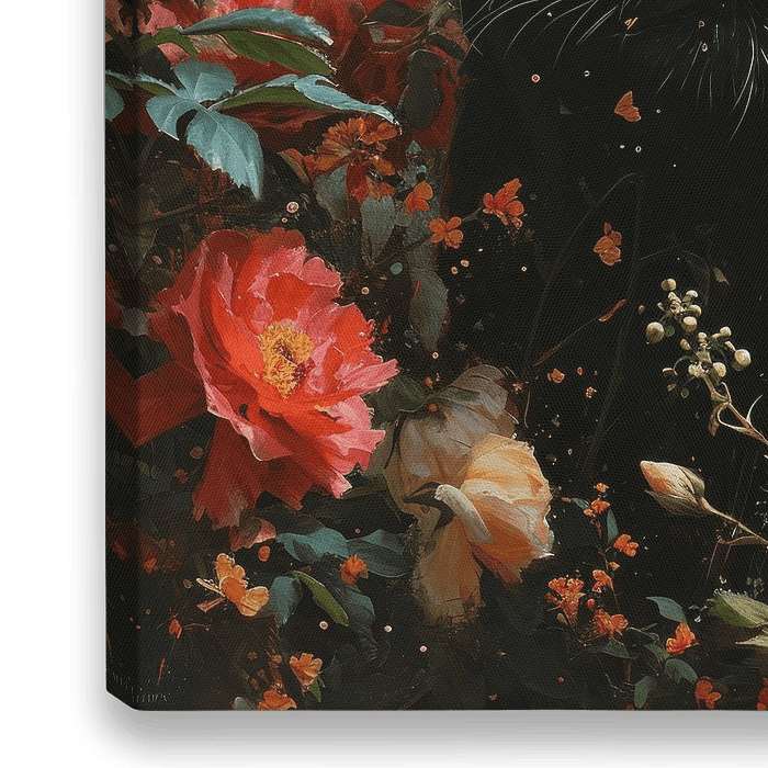 "Shadow and Blossom" ist ein Meisterwerk, das die schwer fassbare Schönheit eines schwarzen Panthers in einem blühenden Garten einfängt. Der intensive Blick des Panthers, der Kraft und Geheimnis ausstrahlt, steht in starkem Kontrast zu den zarten Pastelltönen der Blumen, die ihn umgeben. Dieses Gemälde spiegelt das Gleichgewicht…