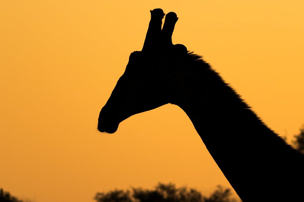 Scherenschnitt-Giraffe bei Sonnenuntergang Südafrika
