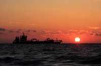 Dieses Schiff passierte die Küste von Westkapelle über die Nordsee, während ein wunderschöner Sonnenuntergang gesehen wurde.