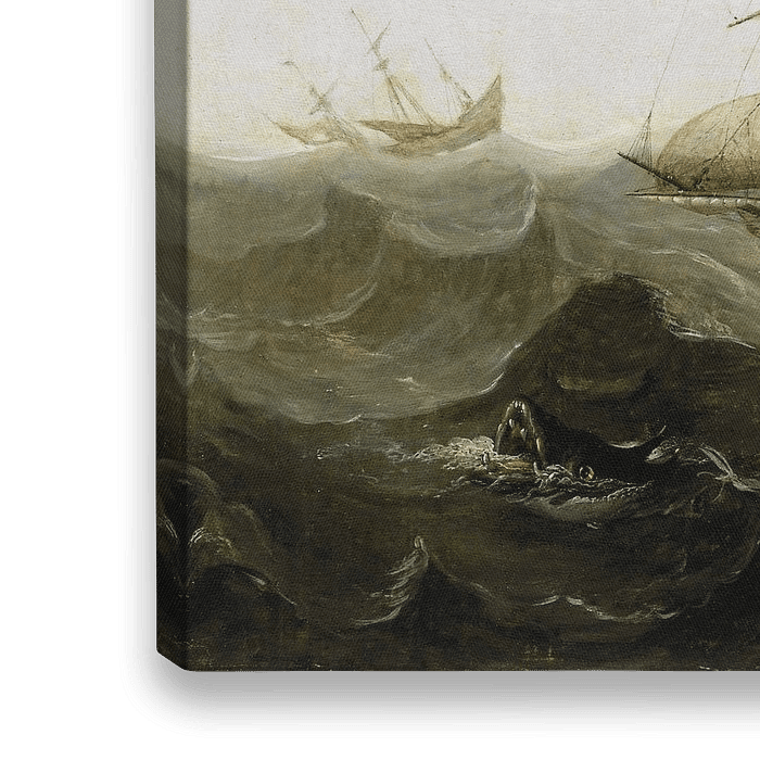 In diesem Gemälde untersucht Verbeeck das etablierte Thema der Schiffe, die in einem Sturm, der in der flämischen und der niederländischen Seelandschaft im ersten Viertel des 17. Jahrhunderts auftrat, vor einer felsigen Küste segeln. Bei mäßig bewölktem Himmel segeln vier Schiffe riesige Wellenkämme. Das Wasser im Vordergrund wird in tiefen Schatten getaucht. Drei der Schiffe sind in einem helleren Bereich in der Nähe des Horizonts links und rechts zu sehen, alles für einen gemäßigten Sturm, der aus dem rechten Hintergrund weht. Im Zentrum der Komposition ist der vierte im Hafenbogen in den Wellen eines rauen Meeres zu sehen. Im rechten Vordergrund erhebt sich eine felsige Küste. Unter den drohenden Klippen driften Stücke und ein Barrel Float. Wellen prallen von hinten gegen das Schiff und Figuren in der Takelage tiefer auf der Vor- und Hauptwerft, deren Segel entsprechend auffächern. Das Blattsegel und das späte Reinigungsblatt werden ebenfalls aufgerollt. Die Rampe des Schiffes weist eine Reihe von Figuren auf dem Deck auf und die Möglichkeit einer Katastrophe wird durch die Nähe des Schiffes zu den Felsen impliziert, die es jedoch zu umgehen weiß. Die Gefahren einer felsigen Küste werden durch das schwimmende Fass und den Mastkopf hervorgehoben, vermutlich durch ein bereits in der Nähe befindliches Schiff. Links steckt der Wal seinen Kopf aus dem Wasser und öffnet sein wildes Maul. Die Matrosen, dargestellt als kleine Figuren auf dem Deck des Schiffes, versuchen d