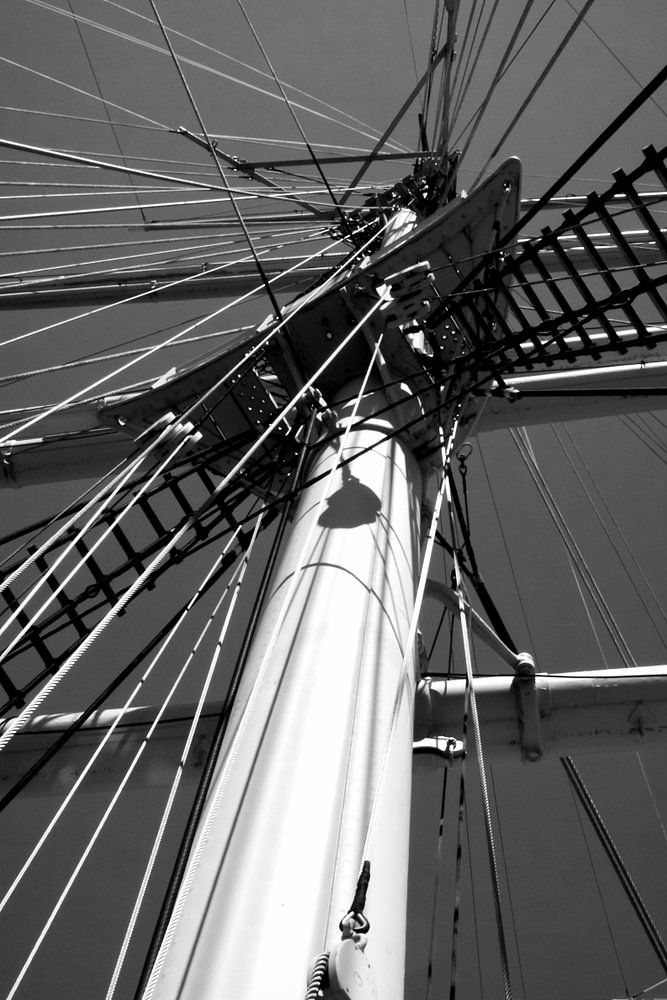 Fotografie eines Schiffsmastes in Schwarz Weiß umgewandelt.