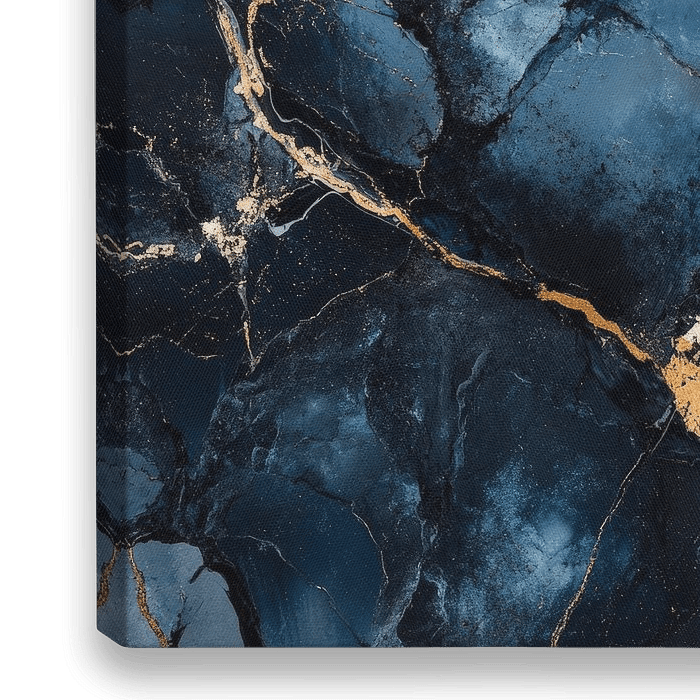 Bestelle dieses abstrakte Wandbild Schimmernder blauer Marmor mit Goldadern von Poster Art Shop als Reproduktion auf Leinwand, Alu-Dibond, als Poster, Fototapete oder Acrylglasbild.