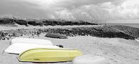 Fotografie, Mischtechnik, Fotofilter, digitale Bearbeitung. 'Schlafende Boote Part-2' oder auch 'Yellow Somewhere'. Ort: Sylt-Hörnum, Richtung Wattenmeer.