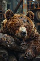 Schlafender Braunbär auf Baumstämmen von Art & Soul Creations